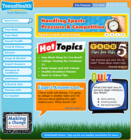 HOT TOPICSSEX In a 2005 study conducted by Harris Polling, "From Teasing to Torment," teachers reported that middle school students were 30 percent more likely to be teased about their sexual orientation than high school students. Most children are aware of their sexuality between the ages of 8 and 11, In the last year, the Gay, Lesbian and Straight Education Network has seen a "huge surge of interest" in addressing anti-LGBT bullying in middle schools. Much of it has been a reaction to the February killing of openly gay student Lawrence King. The 15-year-old was shot twice in the head by a classmate in California. . . Read more Unless you're an adolescent male, you have already asked yourself this question, perhaps in the past few days: Is there something wrong with teen girls? Specifically, are they getting too sexy? Barely a week passes without a flash bulletin blinding us with news of another prominent preadult who is in the family way or showing off her underthings. Miley Cyrus, 15, seminaked! Jamie Lynn Spears, 16, pregnant! A bunch of Massachusetts. . . Read more ALCOHOL Just about everyone knows that the legal drinking age throughout the United States is 21. But according to the National Center on Addiction and Substance Abuse, almost 80% of high school students have tried alcohol.... Read more DRUGS These days, drugs can be found everywhere, and it may seem like everyone's doing them. Lots of people are tempted by the excitement or escape that drugs seem to offer....Read more See articles about drugs, alcohol, principles, morals/values, peer pressure, and more!! Just click the image below to view this resourceful website!! |